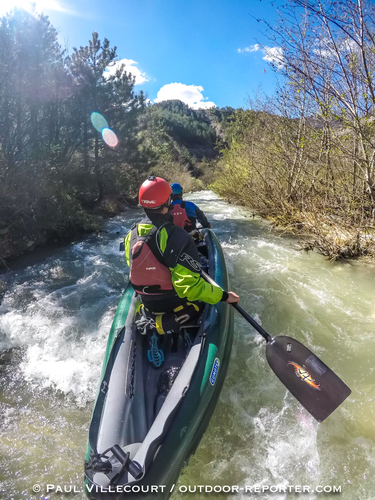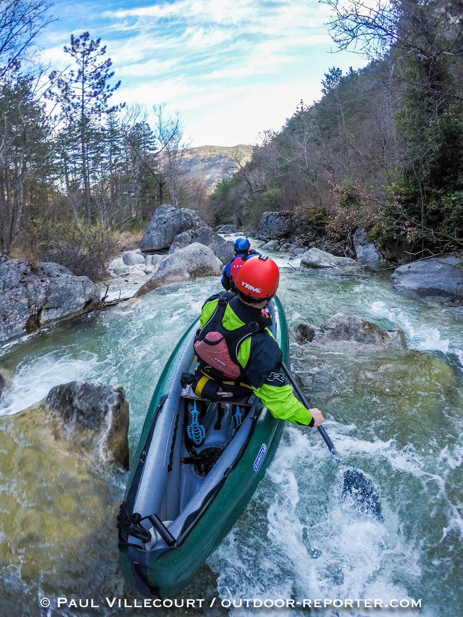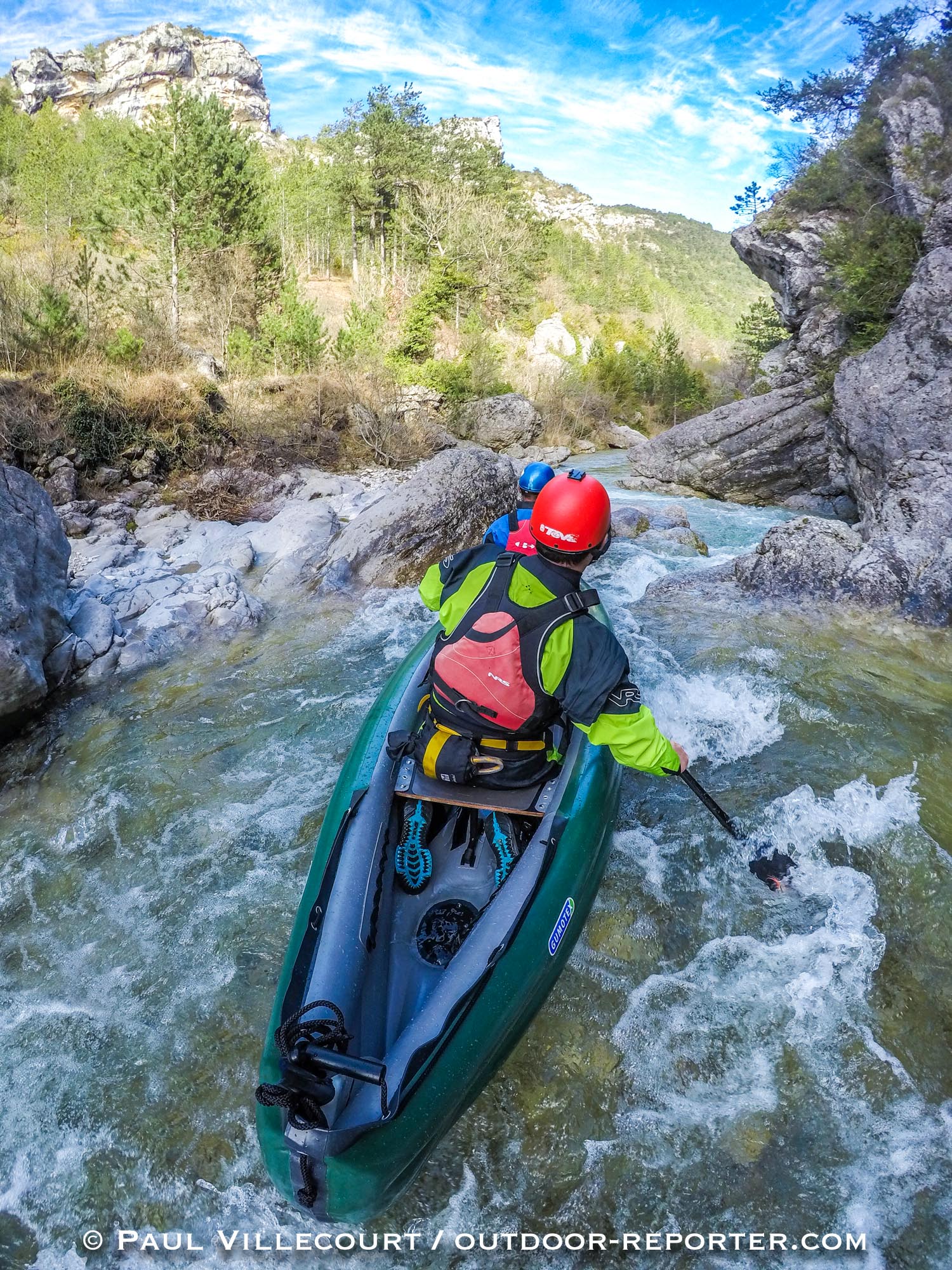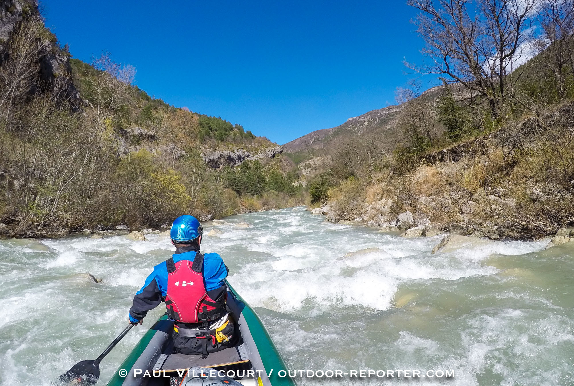 Du coup, nous avons eu envie de pousser le test un cran au-dessus. La Sure est une petite rivière oubliée, rarement en eaux, et surtout très courte : à peine 2 km. Mais quels parcours ! Une superbe série de petits seuils très techniques dans un décor à couper le souffle. Verdict : même pas mal ! Le Scout a franchi cet aqualand naturel avec facilité, et quand le parcours devenait trop dur, il permettait de sauter au bord en 2 secondes pour repérer. En plus d’être très stable, ce canoë gonflable (autovideur) est vraiment confortable.