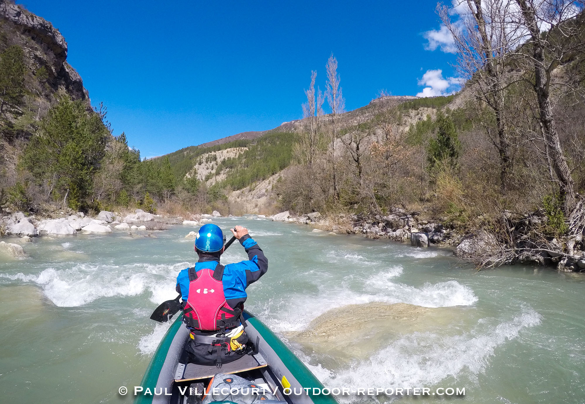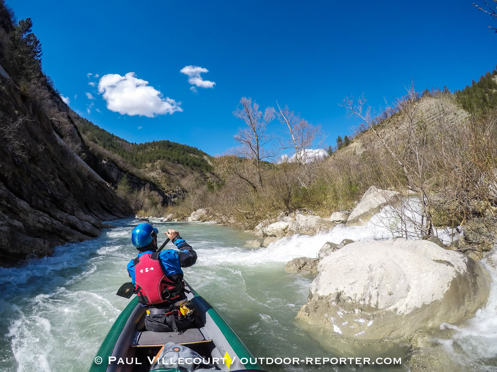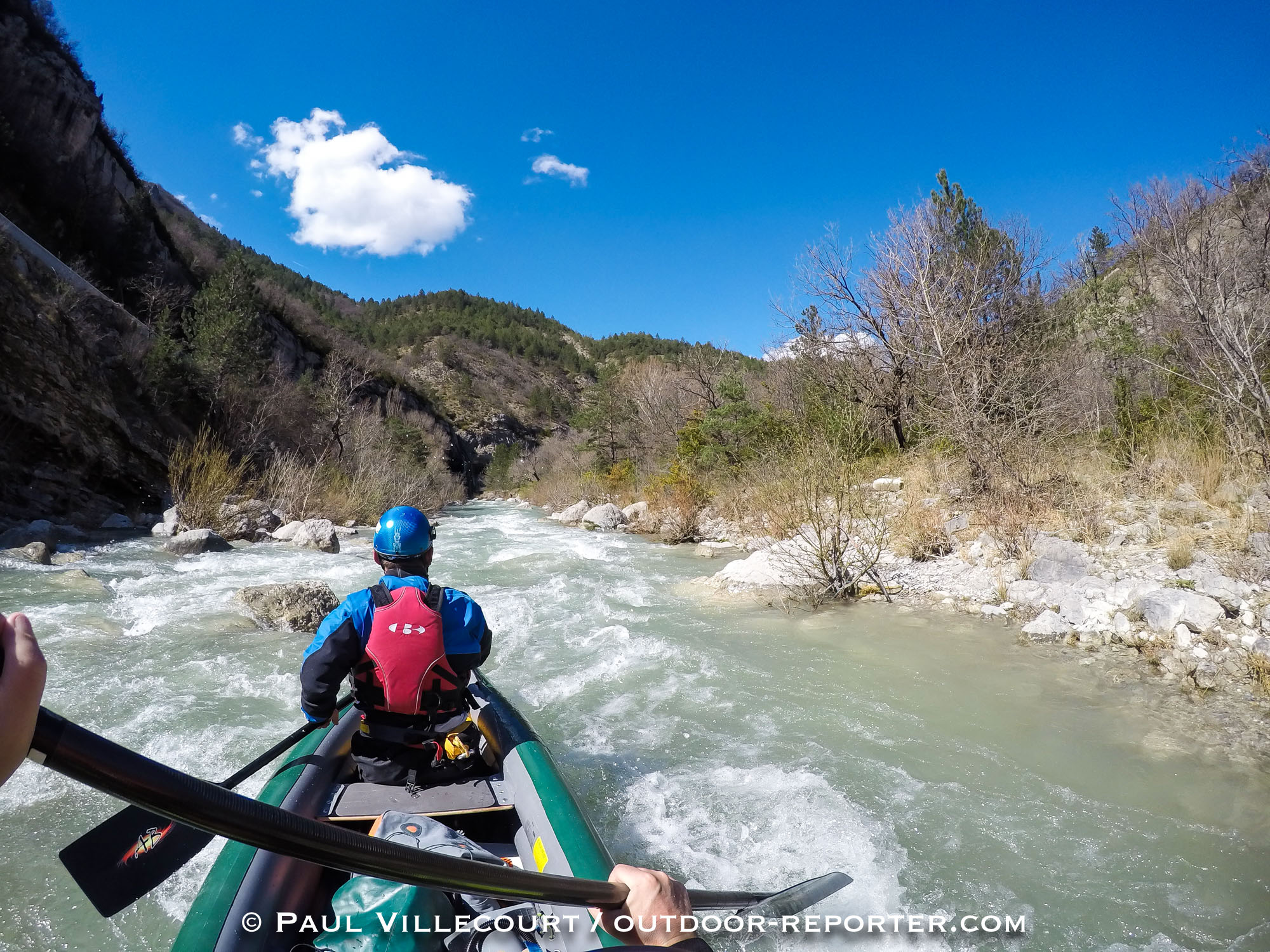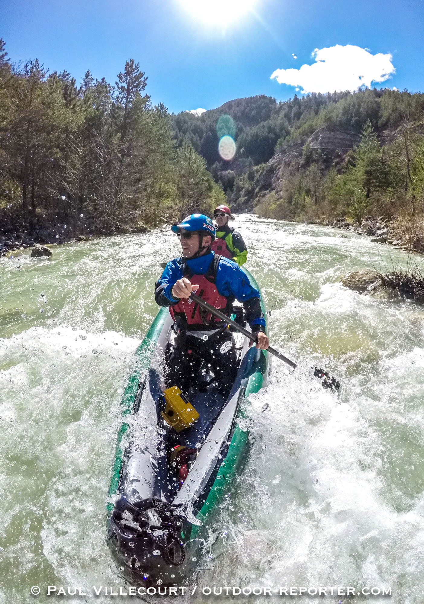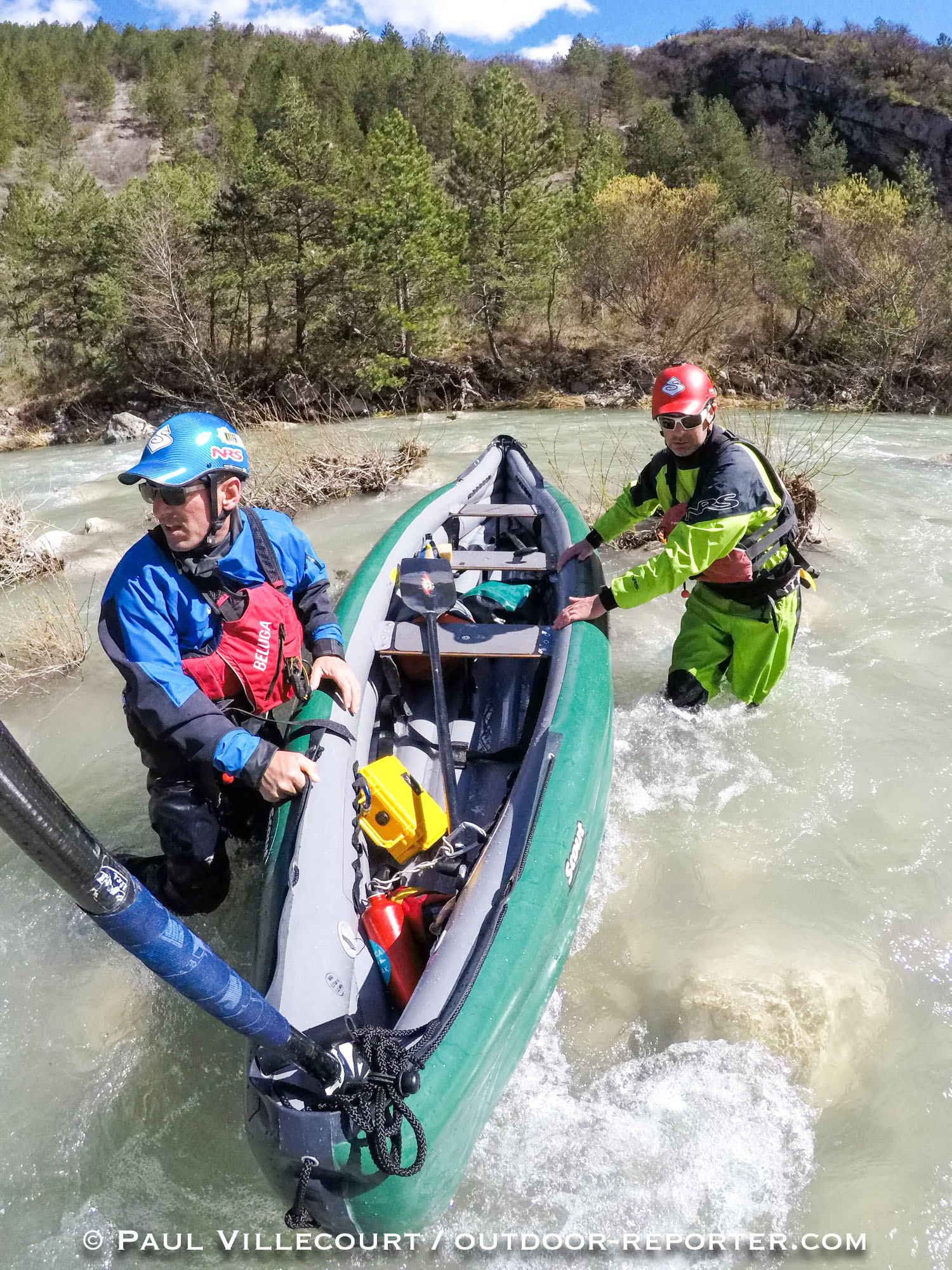 Un weekend trépidant ! Pour tester le dernier « jouet » fourni par notre sponsor, Gumotex, nous nous sommes lancés dans une sublime trilogie en enchaînant dans une même journée la Roanne, la Sure et la Drôme, toutes trois gonflées par les dernières pluies. L’objectif était de se frotter à des parcours très rapides, pentus et techniques, histoire de se préparer à l’Allier supérieur qui sera la section de rivière la plus difficile de la Grande Traversée (fin septembre). Ce weekend fut une vraie révélation ! Philippe et moi sommes bien sûr des kayakistes aguerris en plus d’être des canoteurs expérimentés. Habituellement, la place du kayak est plutôt sur les rivières rapides alors que le canoë est un randonneur au long cours. Pour être tout à fait clair : un canoë n’est pas à sa place sur une rivière difficile. Avec le « Scout » de Gumotex, il est enfin possible de ne plus choisir ! Ce célèbre canoë gonflable permet d’affronter des rapides très techniques en toute sécurité, avec une maniabilité extraordinaire.