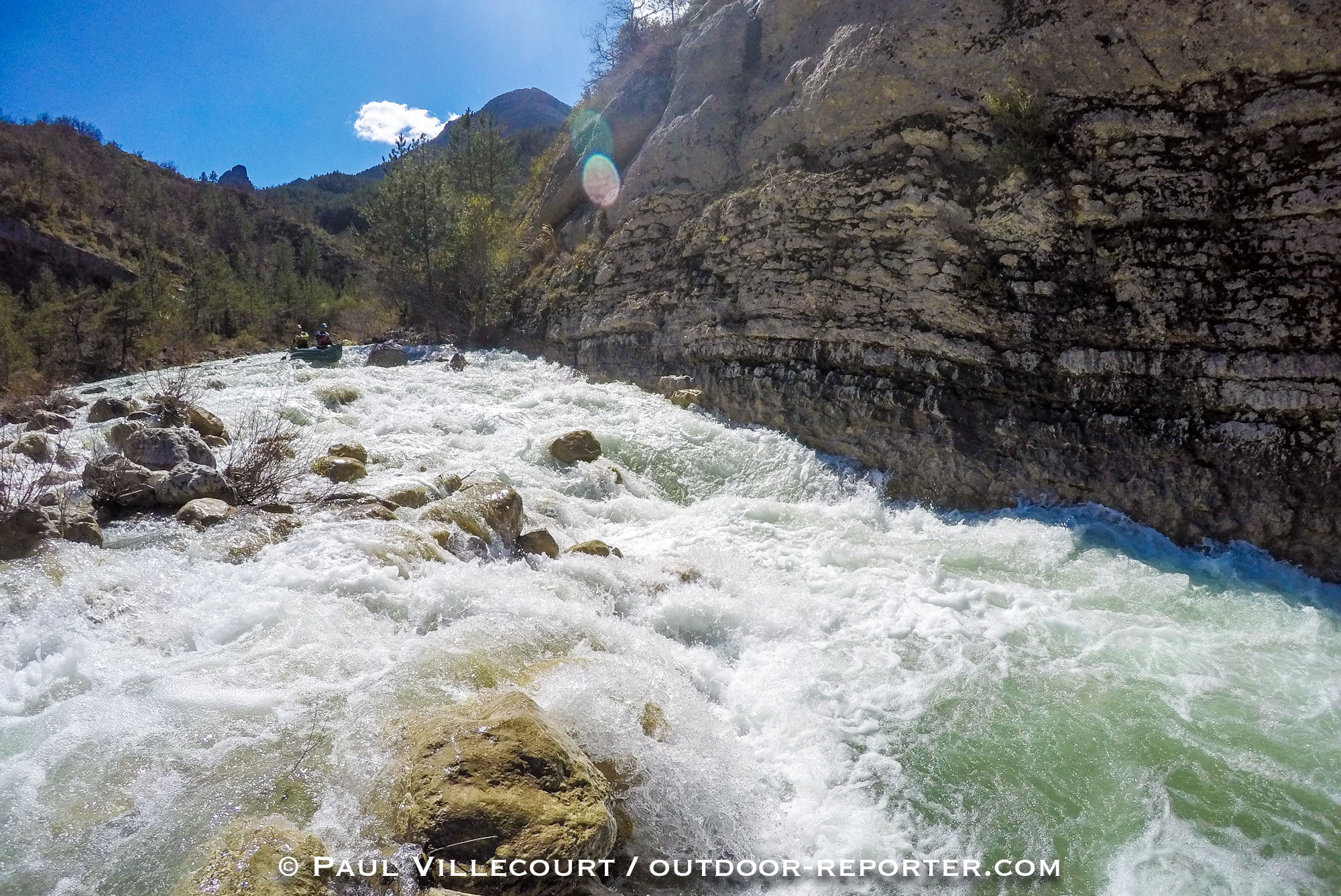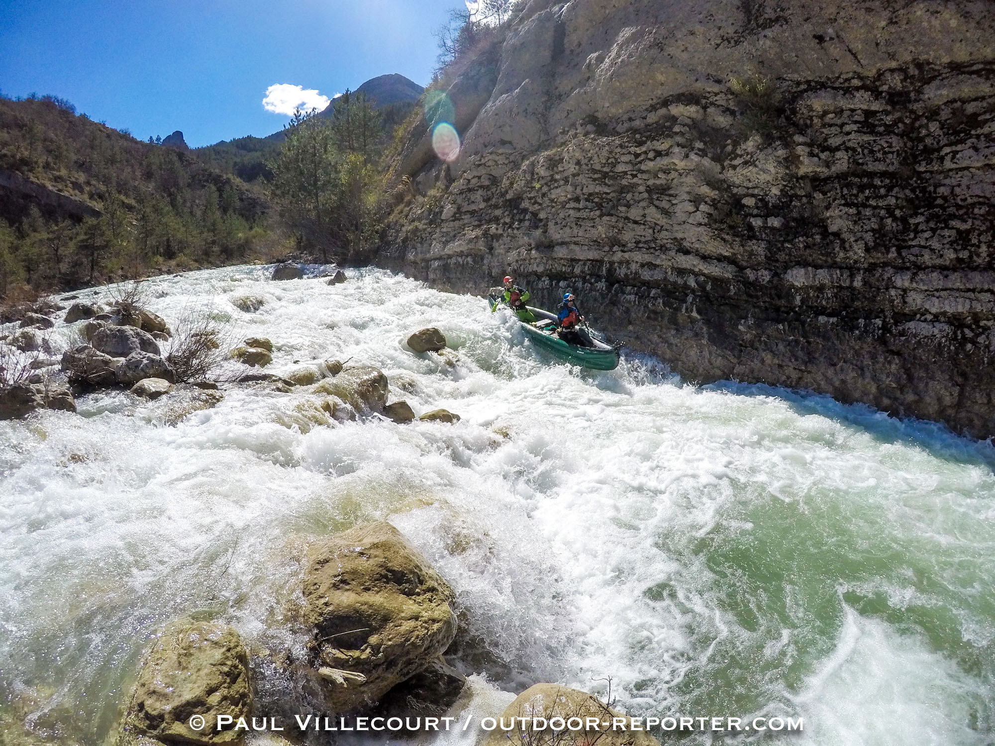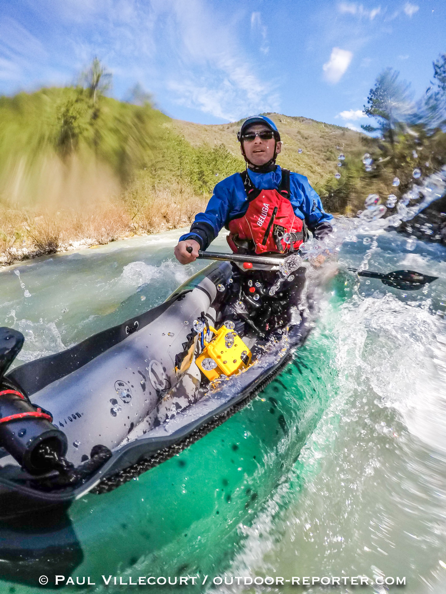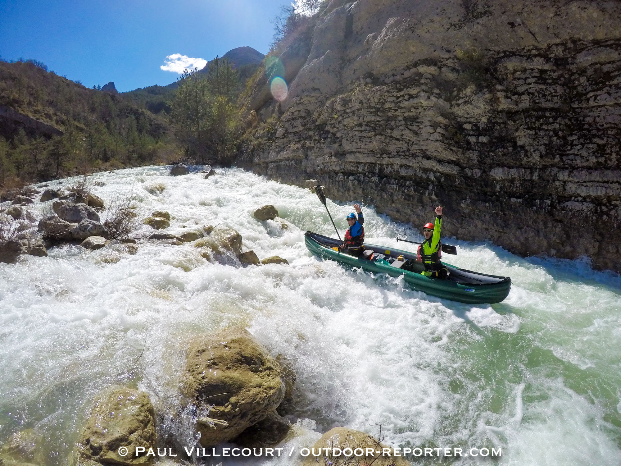 Un weekend trépidant ! Pour tester le dernier « jouet » fourni par notre sponsor, Gumotex, nous nous sommes lancés dans une sublime trilogie en enchaînant dans une même journée la Roanne, la Sure et la Drôme, toutes trois gonflées par les dernières pluies. L’objectif était de se frotter à des parcours très rapides, pentus et techniques, histoire de se préparer à l’Allier supérieur qui sera la section de rivière la plus difficile de la Grande Traversée (fin septembre). Ce weekend fut une vraie révélation ! Philippe et moi sommes bien sûr des kayakistes aguerris en plus d’être des canoteurs expérimentés. Habituellement, la place du kayak est plutôt sur les rivières rapides alors que le canoë est un randonneur au long cours. Pour être tout à fait clair : un canoë n’est pas à sa place sur une rivière difficile. Avec le « Scout » de Gumotex, il est enfin possible de ne plus choisir ! Ce célèbre canoë gonflable permet d’affronter des rapides très techniques en toute sécurité, avec une maniabilité extraordinaire.